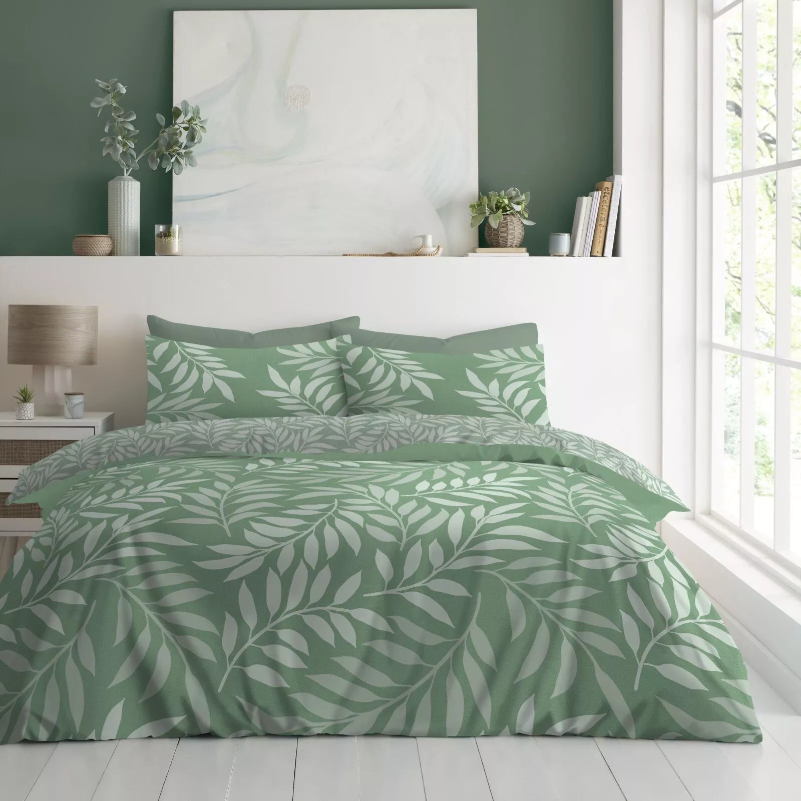 Give a stylish look to your bedroom with this stunning grey leafl design duvet set. Reversible design featuring a pale green leafy print and floral reverse. Each set comes with one duvet cover, one matching fitted sheet and two pillowcases. Beautifully crafted from a soft polycotton blend, this bedding set is durable, on-trend and soft on skin.