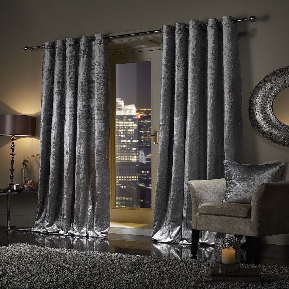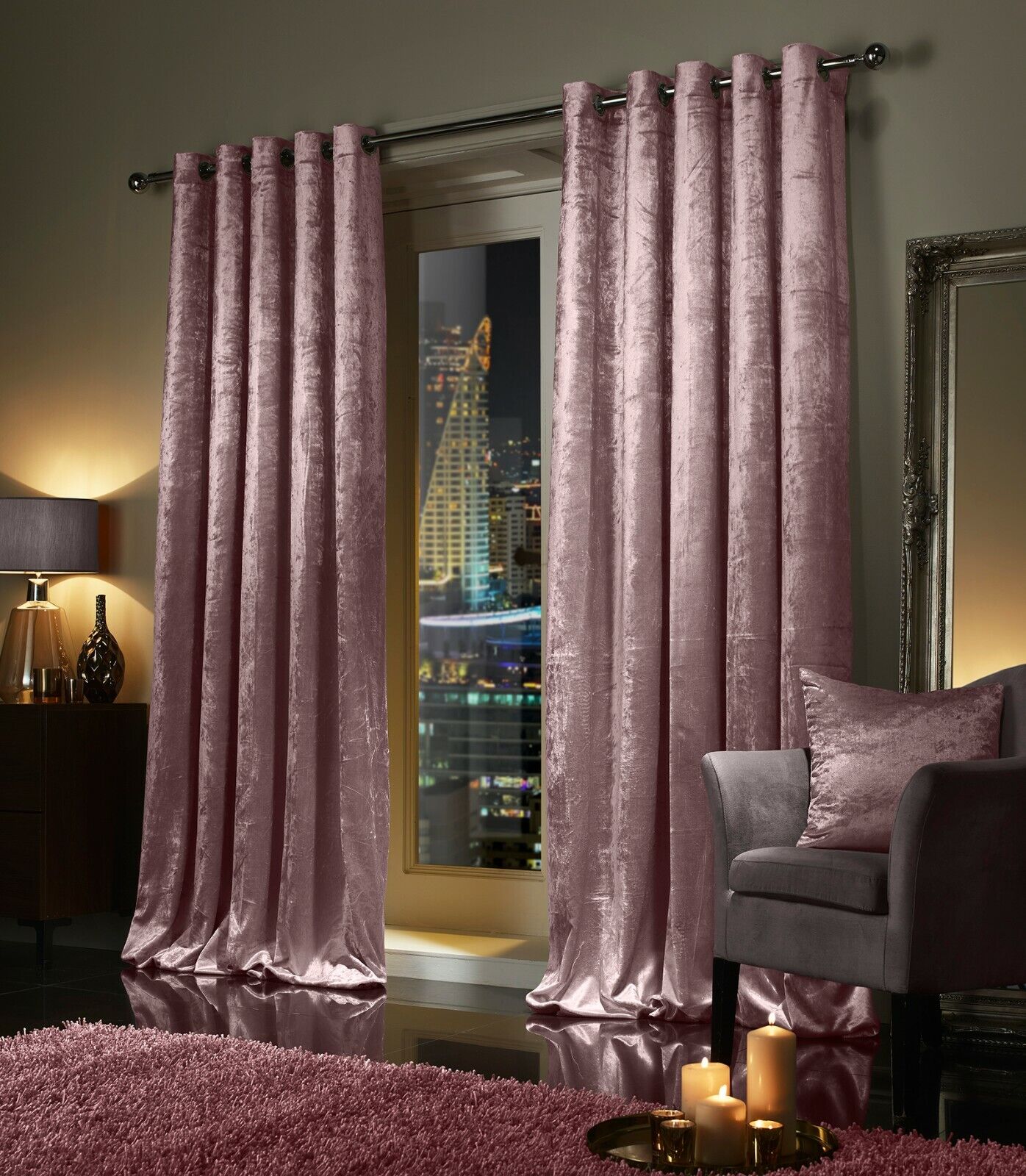 Velour crushed velvet ring top eyelet curtains, specially crafted to provide you with a opulent centrepiece for your home. The velvet-look material and insulating properties will keep you feeling cosy in the colder months while it's room darkening design will shield you from the low winter sun. Large ring top detailing make it easy to install, meaning no fussy hooks. Plush and regal, the construction of the fabric allows it to catch and reflect light giving it a shimmering appearance. Pure luxury.