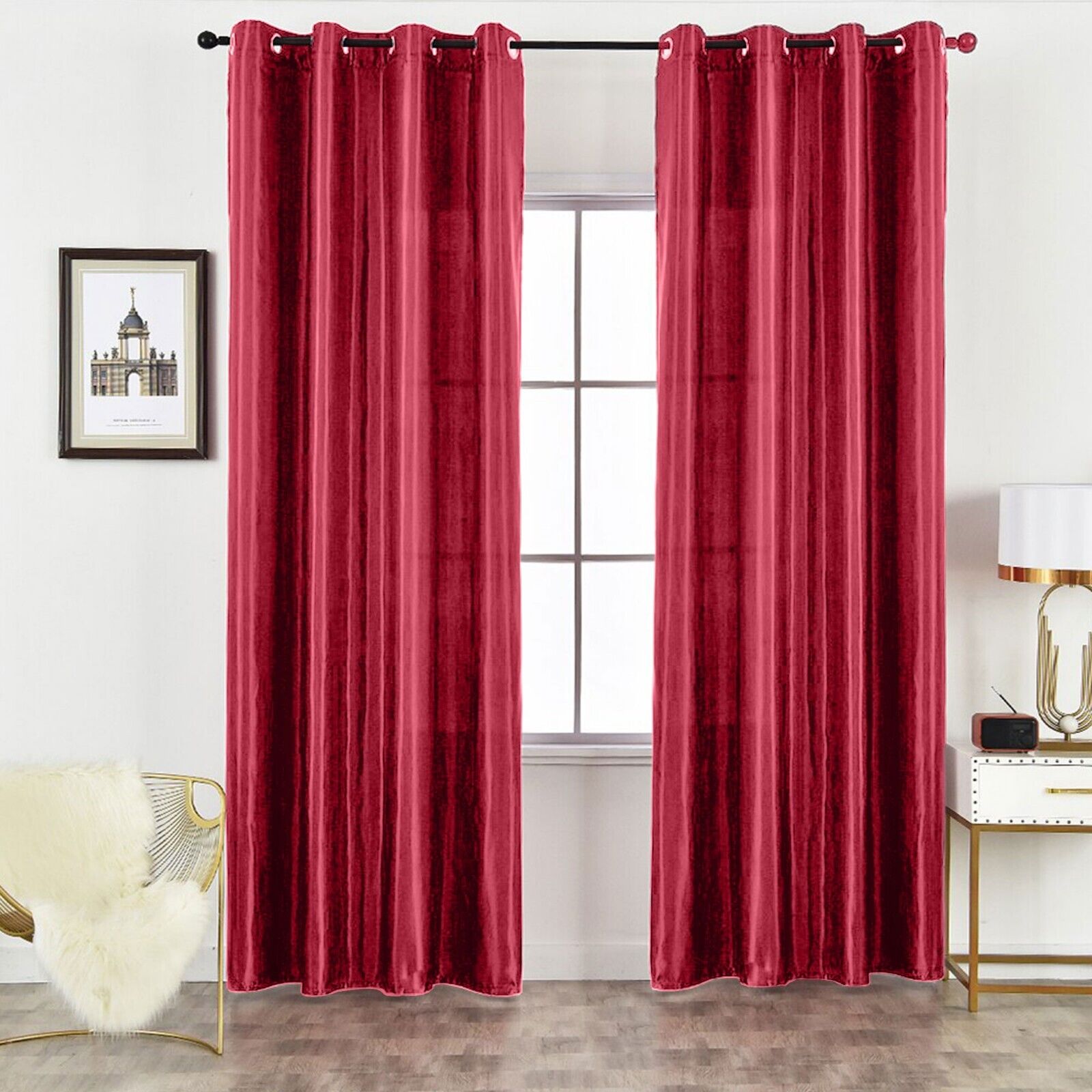 Luxury Faux Silk Eyelet Curtains (Red)