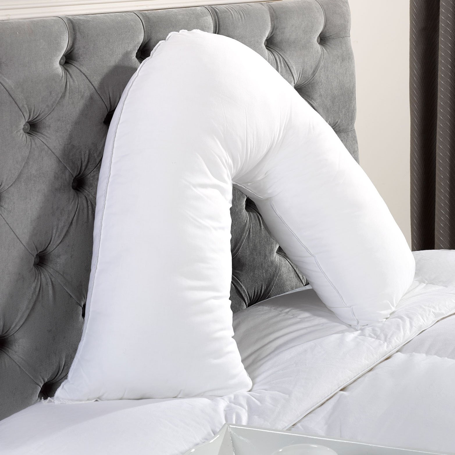 Offering firm support to the shoulders and back, this v shaped pillow is specially shaped to support you whilst sitting up in bed and has been crafted from a blend of polyester and cotton for ultimate softness and durability. Machine washable for easy care and features non-allergenic properties. Contains a blend of GRS approved recycled fibre.